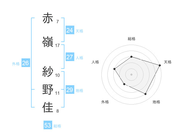 赤嶺 紗野佳さんを姓名の画数から五運を鑑定