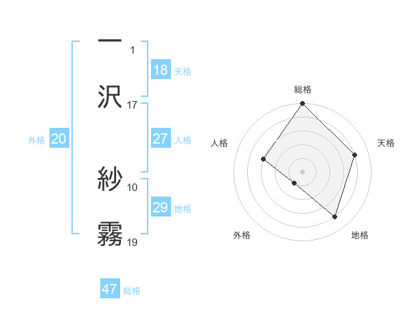 一沢 紗霧さんを姓名の画数から五運を鑑定
