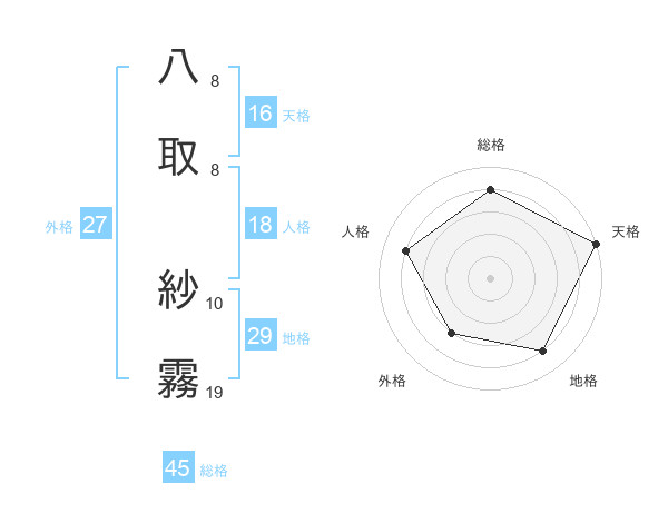八取 紗霧さんの総格は45画の4点!
