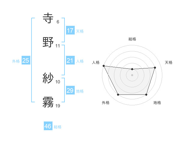 寺野 紗霧さんを姓名の画数から五運を鑑定