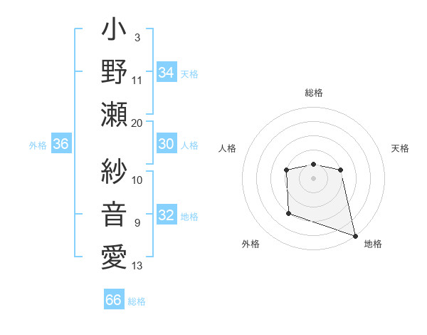 小野瀬 紗音愛さんを姓名の画数から五運を鑑定