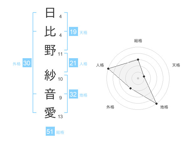 日比野 紗音愛さんを姓名の画数から五運を鑑定