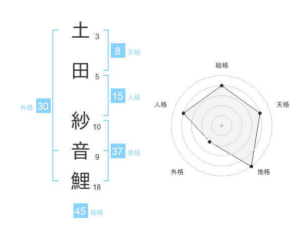 土田 紗音鯉さんを姓名の画数から五運を鑑定