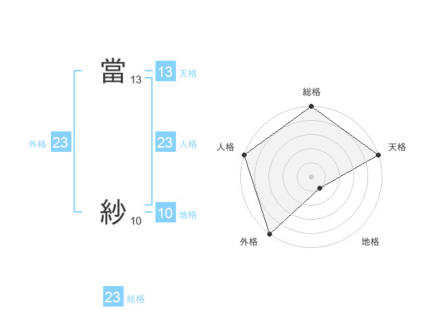 當 紗さんの総格は23画の5点!