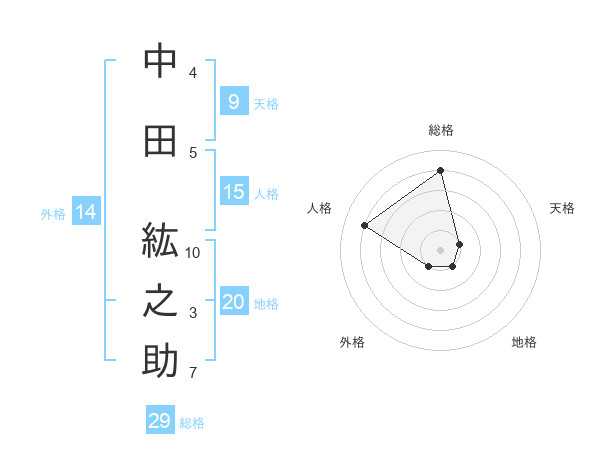 中田 紘之助さんを姓名の画数から五運を鑑定