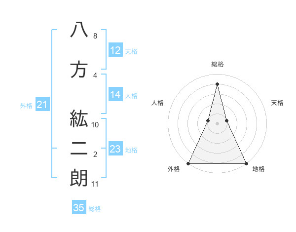 八方 紘二朗さんを姓名の画数から五運を鑑定