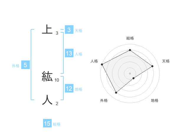 上 紘人さんの総格は15画の4点