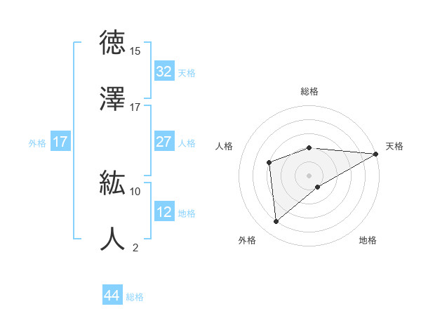 徳澤 紘人さんの総格は44画の2点!