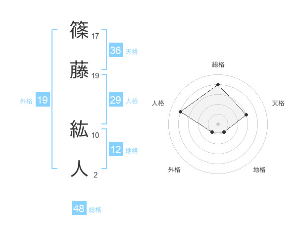 篠藤 紘人さんの総格は48画の4点!