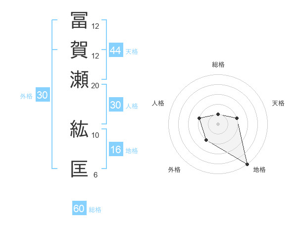 冨賀瀬 紘匡さんを姓名の画数から五運を鑑定