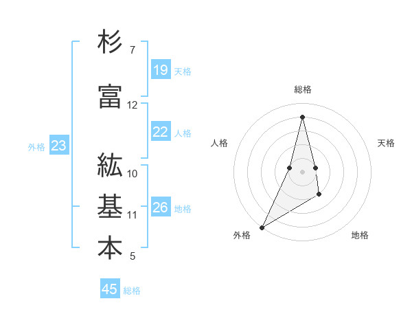 杉富 紘基本さんを姓名の画数から五運を鑑定