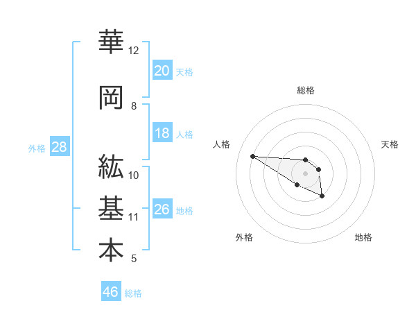 華岡 紘基本さんの天格は20画の1点!