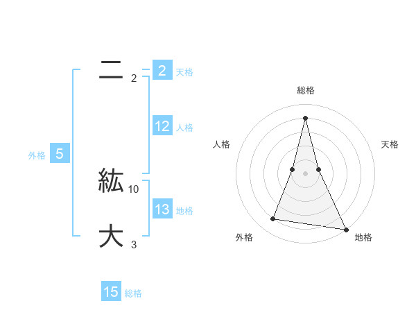 二 紘大さんの総格は15画の4点!