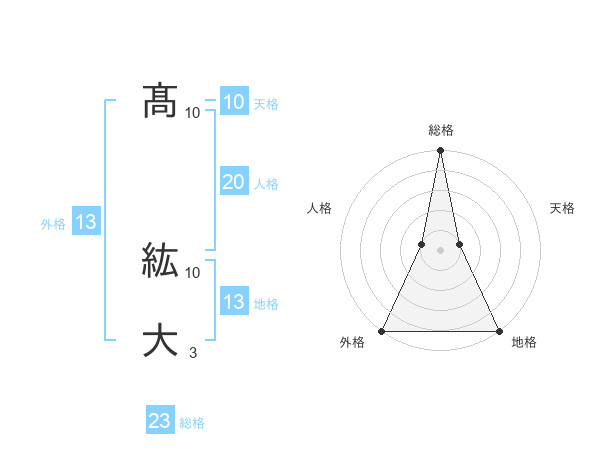 髙 紘大さんの総格は23画の5点!