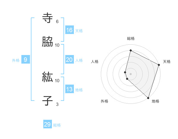 寺脇 紘子さんを姓名の画数から五運を鑑定