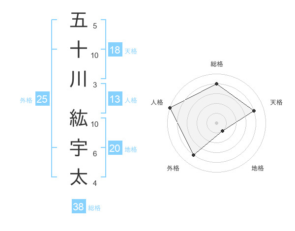 五十川 紘宇太さんの総格は38画の4点!
