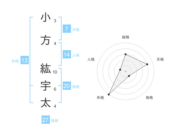 小方 紘宇太さんの天格は7画の4点!