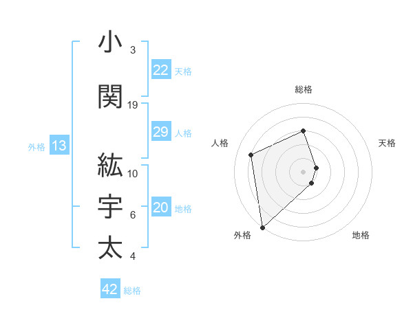 小関 紘宇太さんを姓名の画数から五運を鑑定