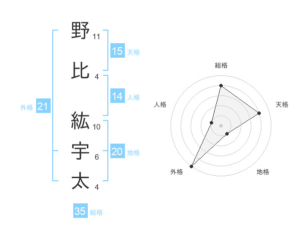 野比 紘宇太さんを姓名の画数から五運を鑑定