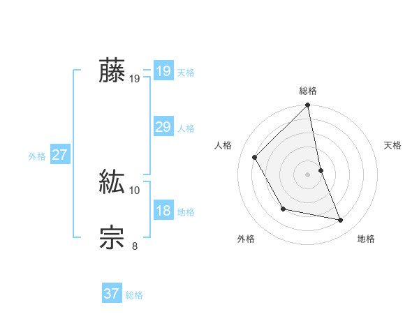 藤 紘宗さんの総格は37画の5点!