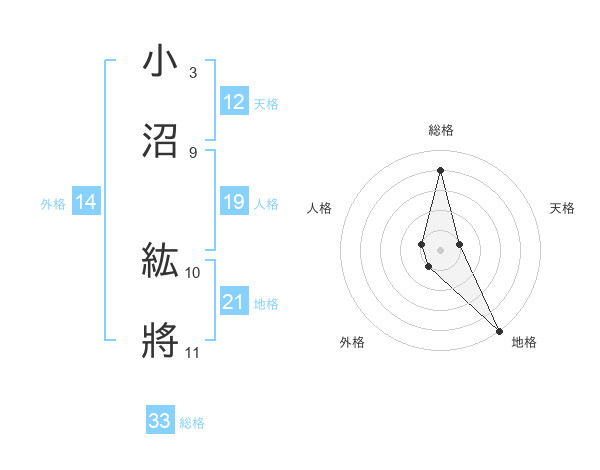 小沼 紘將さんを姓名の画数から五運を鑑定