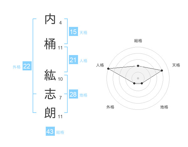 内桶 紘志朗さんを姓名の画数から五運を鑑定