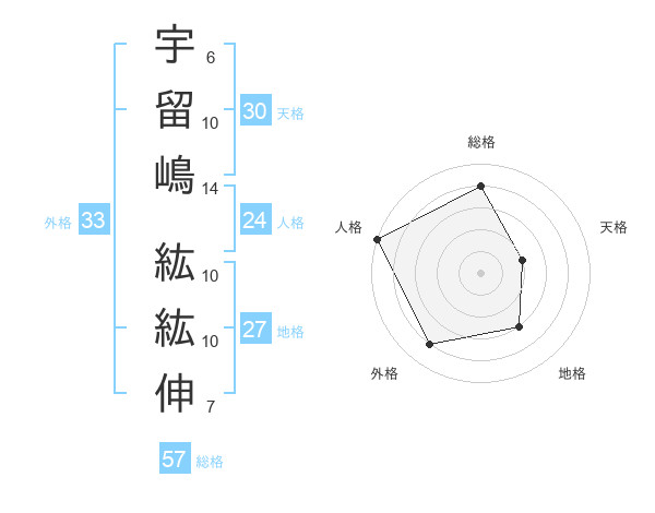 宇留嶋 紘紘伸さんの総格は57画の4点!