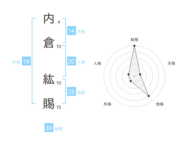 内倉 紘賜さんの総格は39画の5点!