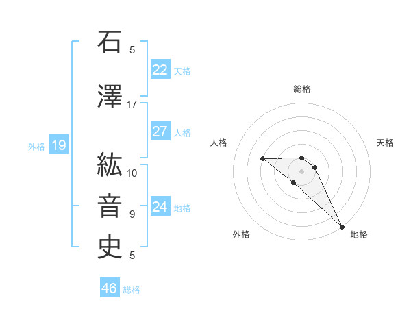石澤 紘音史さんを姓名の画数から五運を鑑定