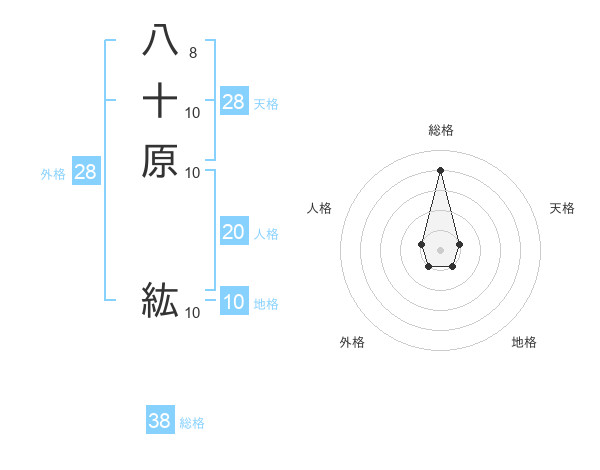 八十原 紘さんの総格は38画の4点!