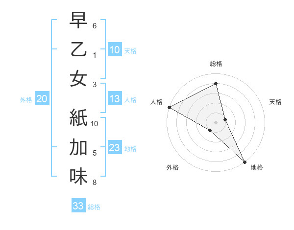 早乙女 紙加味さんを姓名の画数から五運を鑑定