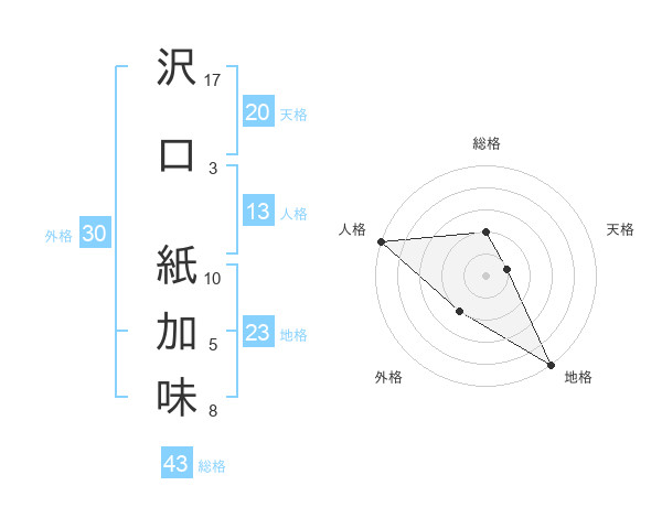 沢口 紙加味さんを姓名の画数から五運を鑑定