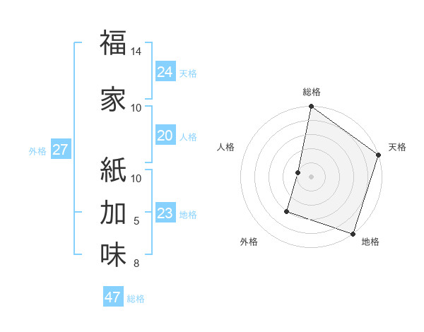 福家 紙加味さんを姓名の画数から五運を鑑定