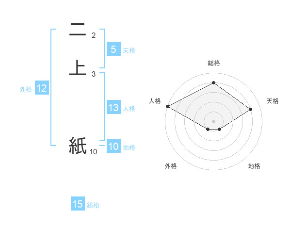 二上 紙さんの総格は15画の4点!