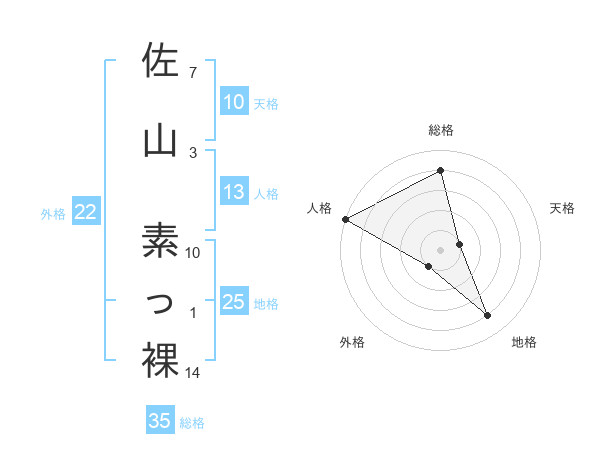 佐山 素っ裸さんを姓名の画数から五運を鑑定