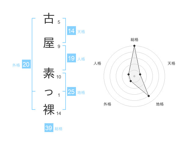 古屋 素っ裸さんを姓名の画数から五運を鑑定