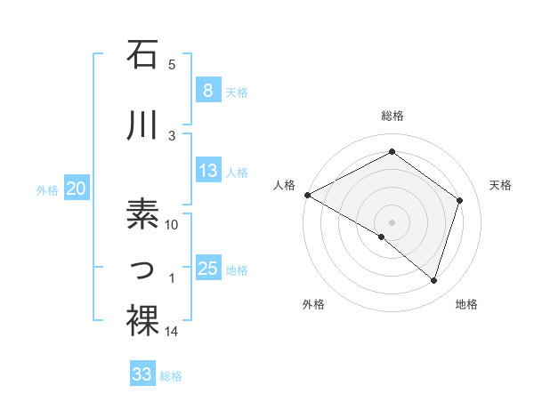石川 素っ裸さんを姓名の画数から五運を鑑定