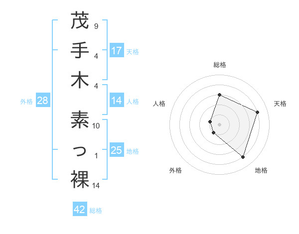 茂手木 素っ裸さんを姓名の画数から五運を鑑定