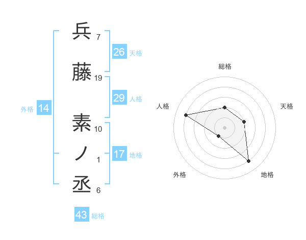 兵藤 素ノ丞さんの総格は43画の2点!