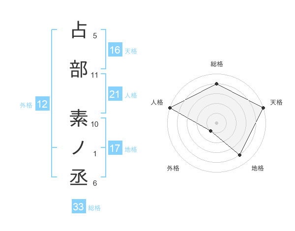 占部 素ノ丞さんを姓名の画数から五運を鑑定
