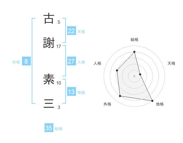古謝 素三さんの天格は22画の1点!