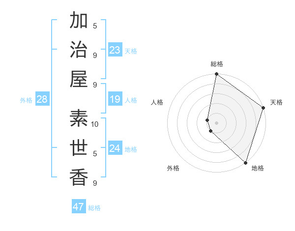 加治屋 素世香さんを姓名の画数から五運を鑑定