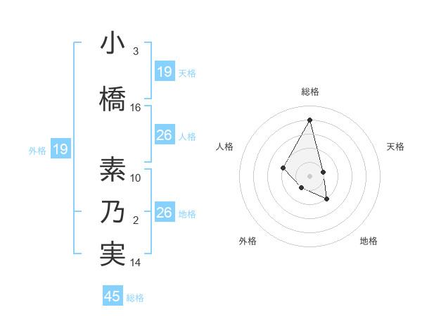 小橋 素乃実さんを姓名の画数から五運を鑑定