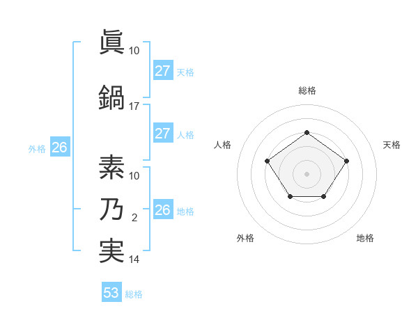 眞鍋 素乃実さんを姓名の画数から五運を鑑定