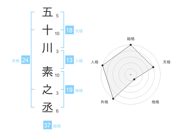 五十川 素之丞さんを姓名の画数から五運を鑑定