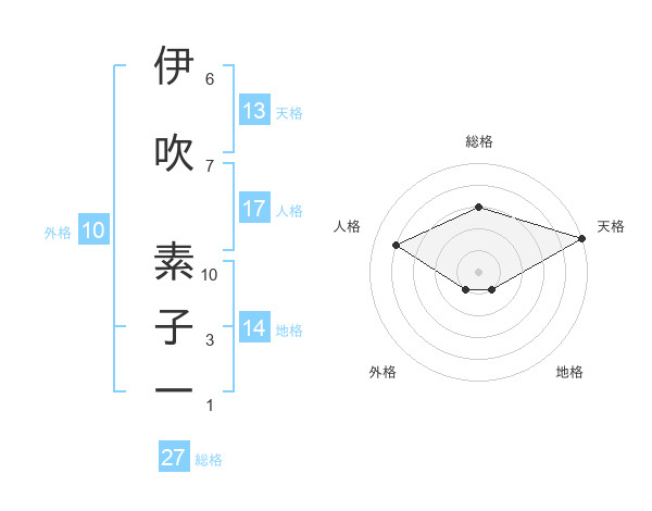 伊吹 素子一さんを姓名の画数から五運を鑑定