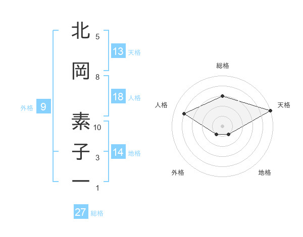 北岡 素子一さんを姓名の画数から五運を鑑定