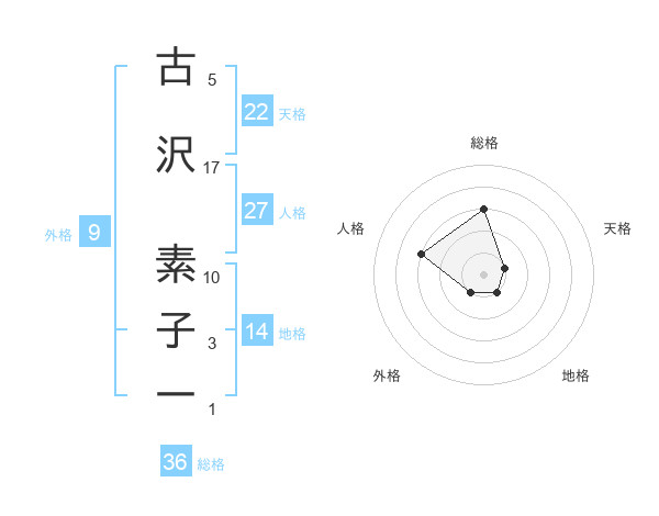 古沢 素子一さんを姓名の画数から五運を鑑定