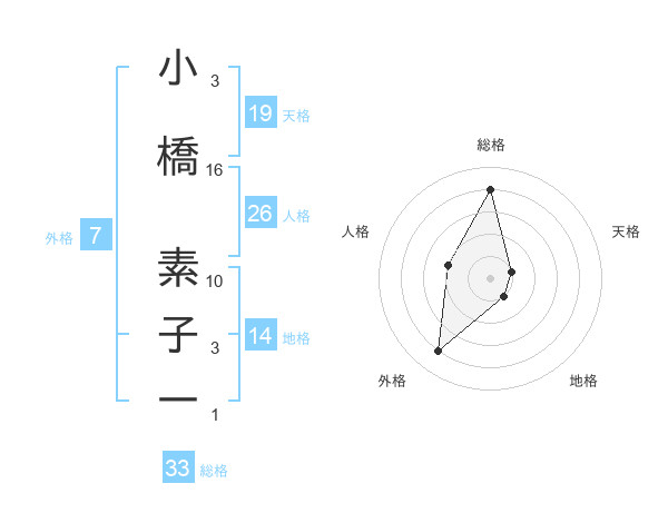 小橋 素子一さんの天格は19画の1点!