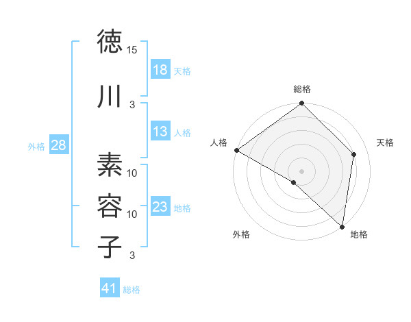 徳川 素容子さんを姓名の画数から五運を鑑定
